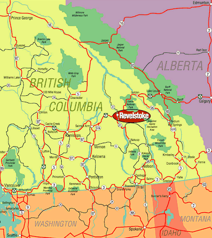 | When traveling to Revelstoke, BC, the distance from major centers are shown in the table at left. The Kelowna Airport is 199 km (124 miles) from Revelstoke. The Calgary Airport is 413 km (257 miles) from Revelstoke. |